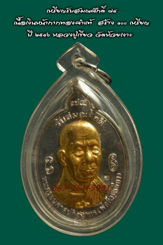เหรียญเงิน หน้ากากทองคำแท้ สร้าง ๕๐ เหรียญ ปี ๒๕๔๖ พ่อท่านเขียว วัดห้วยเงาะ