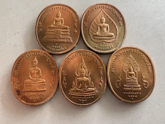 #เคาะเดียว## เหรียญพระพุทธปัญจภาคี หลังในหลวงรัชกาลที่ 9 แบบพิมพ์ใหญ่ ครบชุด 5 เหรียญ เนื้อทองแดง ปี 2539 พร้อมกล่องเดิมครบชุด |
