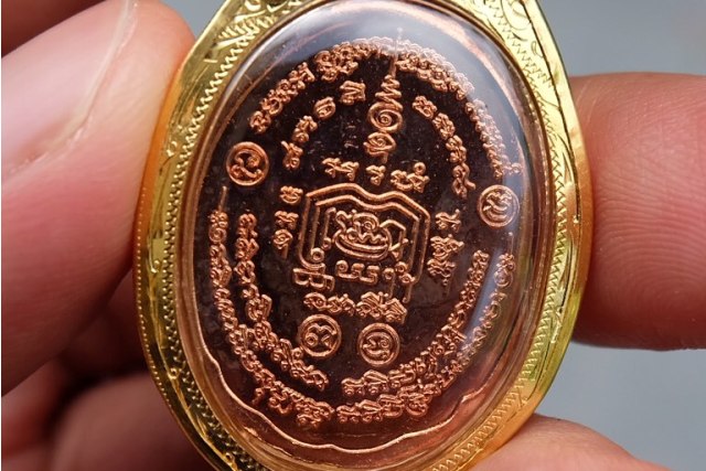 เหรียญหลวงพ่อรวย รุ่นชนะจน เลี่ยมทองเปอร์เซ็นต์สูง หนัก 2.40 กรัม