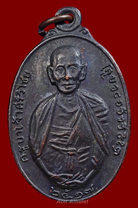 เหรียญครูบาศรีวิชัยเนื้อทองแดง รุ่น ทลเกล้า หลวงปู่แหวน สุจิณฺโณ วัดดอยแม่ปั๋ง อ.พร้าว จ.เชียงใหม่ พ.ศ.2517