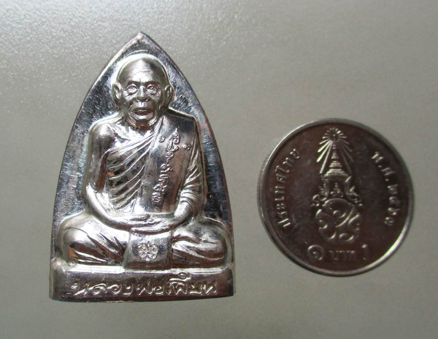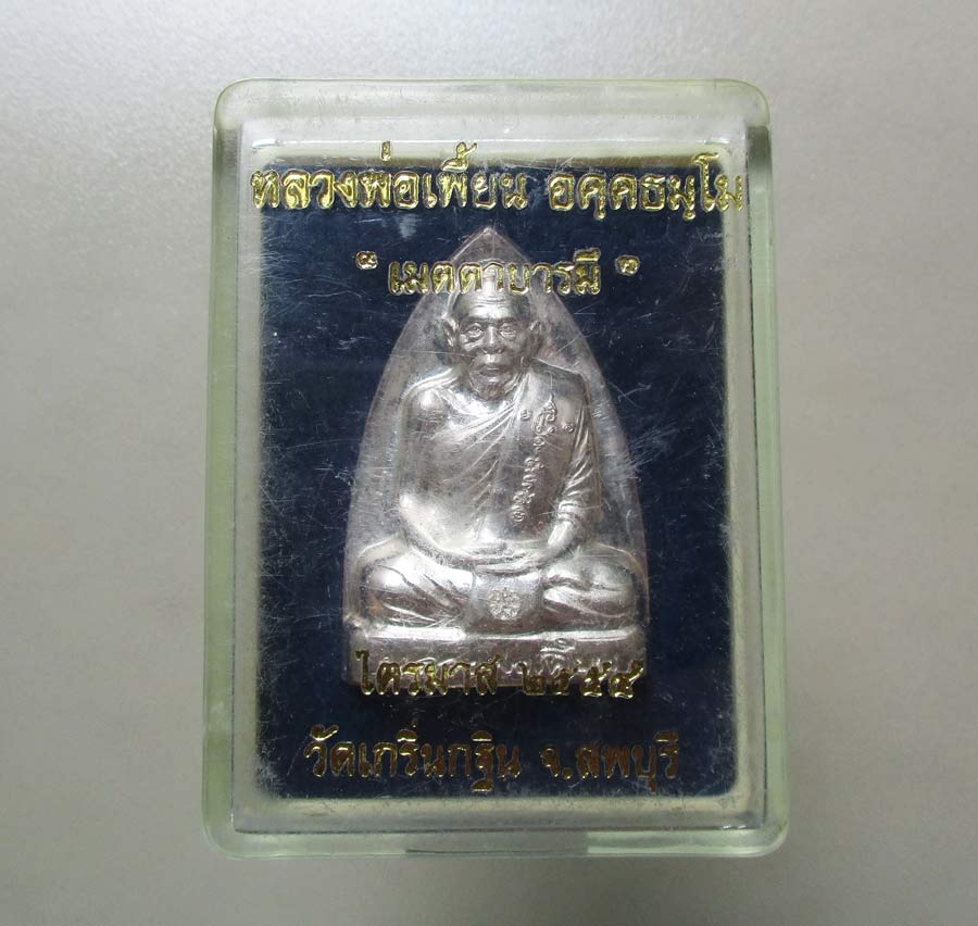 เหรียญพิมพ์เตารีด หลวงพ่อเพี้ยน วัดเกริ่นกฐิน จ.ลพบุรี รุ่นเมตาบารมี ไตรมาส 55 พ.ศ.2555 เนื้อเงิน ตอก 3 โค๊ต ตอกเลข พร้อมกล่อง !!