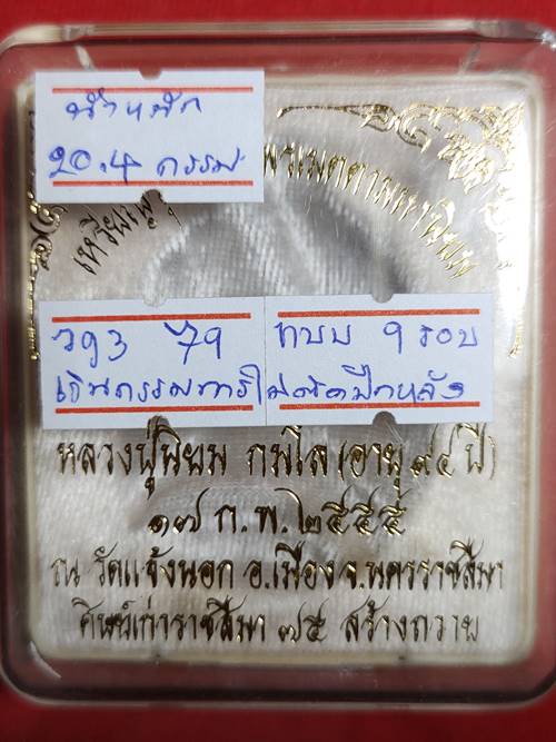 เหรียญหลวงปู่นิยม กมโล รุ่น เจริญพรเมตตามหานิยม ออกวัดแจ้งนอก ปี 2555 เนื้อ เงินพิมพ์กรรมการไม่ตัดปีกหลังแบบ พิเศษ ตอกโค๊ต 9 รอบ หมายเลข 79 สภาพสวย เคาะเดียวแดง