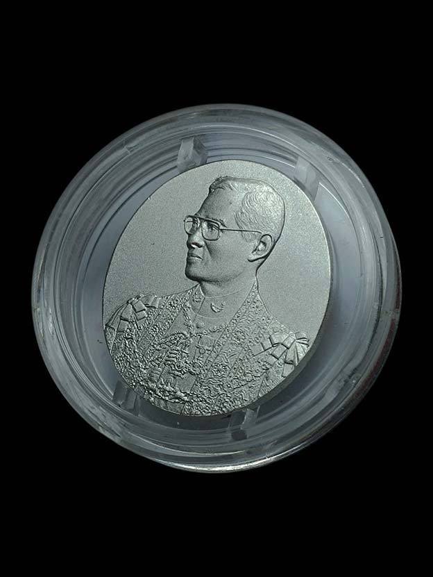 เหรียญรัชกาลที่ 9 หลังโฮโลแกรม มูลนิธิวชิรเวชวิทยาลัย เฉลิมพระเกียรติ 2542 ผลิตที่โรงงานกษาปณ์ฮูกานินท์ ประเทศสวิสเซอร์แลนด์ เนื้อนิกเกิ้ลเคลือบเงิน 999 สวยเหมือนเนื้อเงินมากๆ พร้อมตลับสูญญากาศ