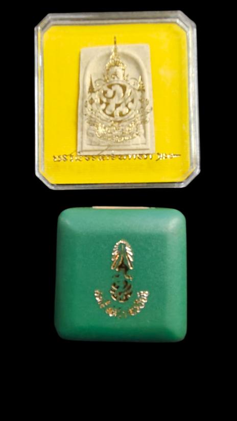 **100.**(2องค์) พระสมเด็จศิริราชร้อยปี ปี29 มวลสารจิตรลดา ด้านหลัง ภปร.กล่องเดิม + พระสมเด็จพระพุทธชินสีห์ หลังภปร. วัดบวรฯ หลังตราสัญลักษณ์พระราชพิธีมหามงคลเฉลิมพระชนมพรรษา 7 รอบ ในหลวงรัชกาลที่ 9 ปี 2542 |