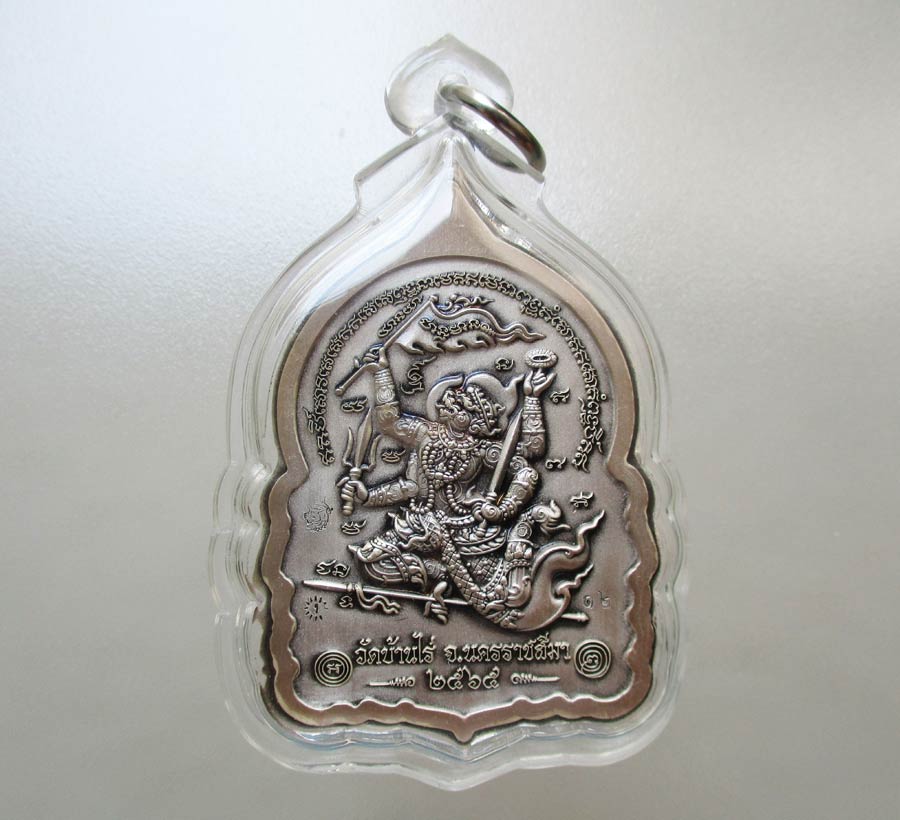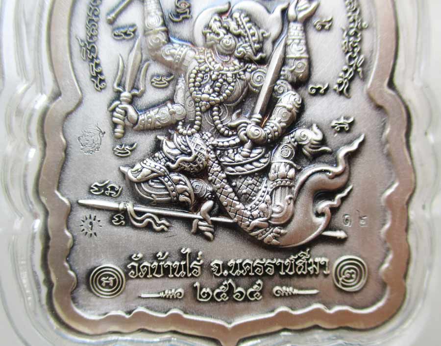 เหรียญนั่งพาน รุ่น ทองชนะมาร หลวงพ่อทอง วัดบ้านไร่ จ.นครราชสีมา พ.ศ.2565 เนื้อเงินรมซาตินลงยาสีจีวร ตอก 2 โค๊ต ตอกเลข เลี่ยมกันน้ำพร้อม