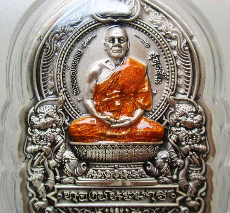 เนื้อเงินรมซาตินลงยาสีจีวร ขนาด 3 ซ.ม. X 4.5 ซ.ม. สภาพเหรียญสวยกริ๊บๆ เลี่ยมกันน้ำพร้อมแขวน !!