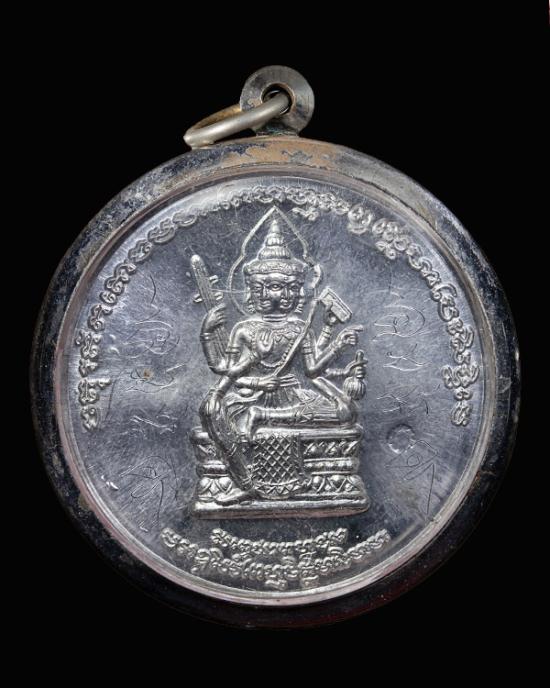 วัดใจทุกรายการ เหรียญพระพรหม หลังยันต์ หลวงปู่ผาด วัดไร่ ปี2551 เนื้อตะกั่วหลังจารเต็ม