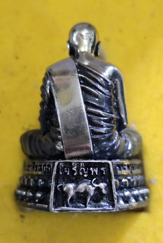 รูปหล่อลอยองค์ พ่อท่านเขียน ฐิตธมฺโม (หรือ หลวงพ่อเขียน) วัดกระทิง จังหวัดจันทบุรี รุ่น "เจริญพร" ปี พ.ศ. 2554 เนื้อเงินแท้