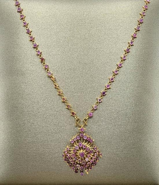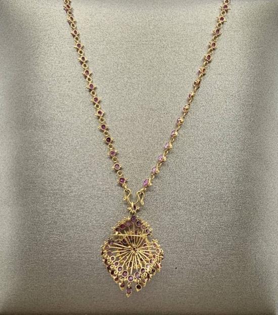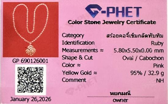 สร้อยทอง 95% จี้ทอง 87% สร้อยคอ+จี้เข็มกลัดทับทิม (น้ำหนัก 32.9 กรัม) ความยาว 26 นิ้ว **พร้อมบัตรจีเพชร**