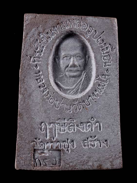 ๓.พิมพ์ใหญ่ ไม่มีกริ่ง เนื้อผงสีแดงอมเทา ด้านหลังเป็นรูปหลวงพ่อ ใต้รูปเขียนว่า ฤาษีลิงดำ ศิษย์หลวงพ่อปาน รุ่น ๑. ๑๐,๐๐๐.