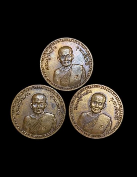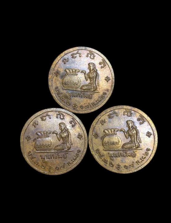 เหรียญหลวงปู่คำแสน วัดดอนมูล หลังถุงเงิน รุ่นพูนทรัพย์ ปี 25 21 เนื้อทองแดงสภาพสวยเดิม ตอกโค้ดคมชัดครับ 3 เหรียญ สวยๆครับ