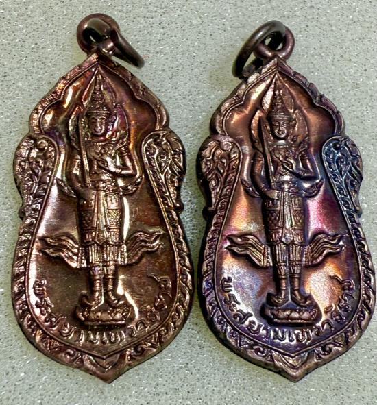 เหรียญพระสยามเทวาธิราช หลัง นวม. สภาพสวยทั้ง 2 เหรียญค่ะ พระเหมาบ้านมาลงวัดค่ะ |