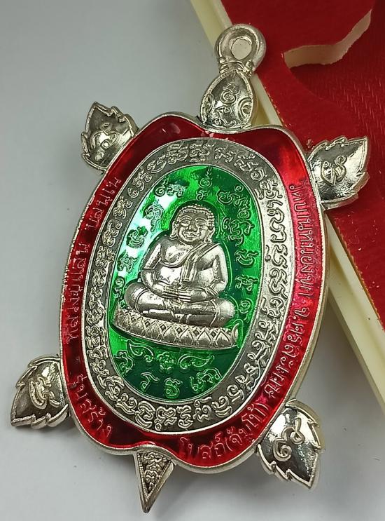 (เลขคู่สวย เบอร์11) เหรียญพญาเต่าเรือน (จัมโบ้) หลวงปู่แสน วัดบ้านหนองจิก รุ่น สร้างโบสถ์ เนื้อเงินลงยา2สี เบอร์ 11 พร้อมกล่องครับ (เหรียญจริงใหญ่ น้ำหนัก30.70 กรัม) (S)