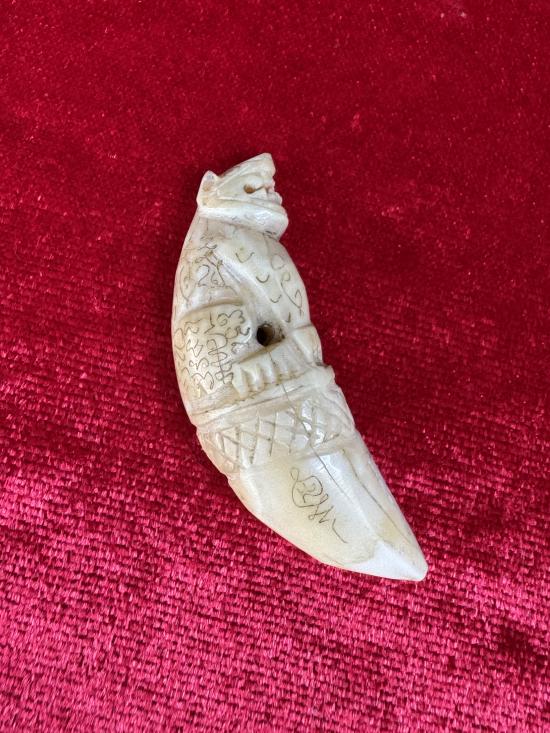 รายละเอียด เขี้ยว แกะรูปเสือ มีรอยจารไม่ทราบที่