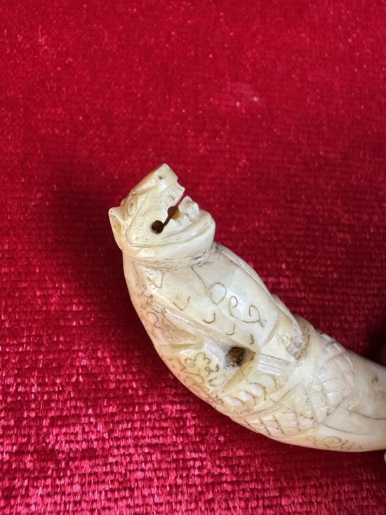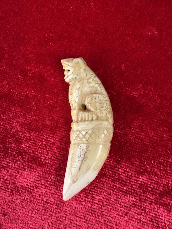 รายละเอียด เขี้ยว แกะรูปเสือ มีรอยจารไม่ทราบที่