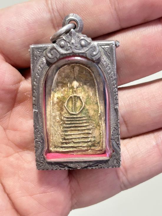 วัดใจ แดงเคาะแรก พระสมเด็จหลวงปู่ภู วันอินทรฯ พิมพ์แปดชั้นแขนหักศอก พร้อมบัตรสองสถาบัน + กรอบเงินแท้ 26.33 กรัม