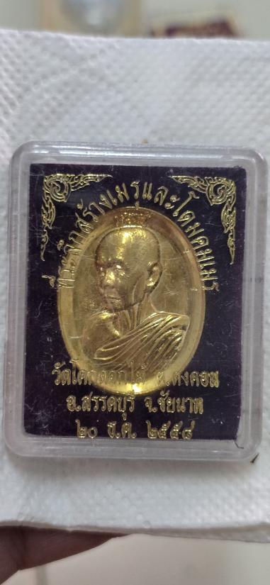 เหรียญที่ระลึกสร้างเมรุและโดมคุมเมรุ หลวงพ่อพร้าวัดโคกดอกไม้ จ.ชัยนาท เนื้อกะไหล่ทอง พร้อมกล่อง รายละเอียด เคาะเดียวค่ะ