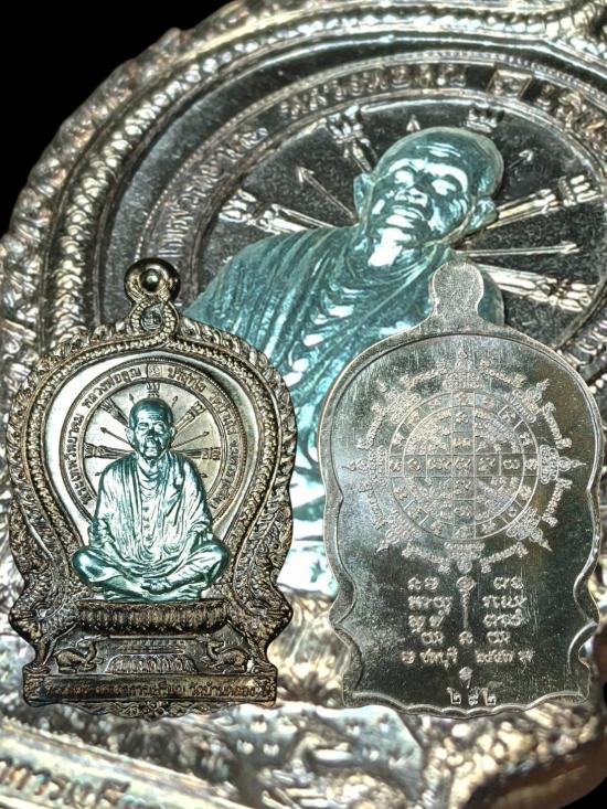 เหรียญนั่งพานหลวงพ่อคูณ เนื้อนวะโลหะหน้ากากเงิน วัดบ้านคลอง จ.ชลบุรี ปี 2557 หมายเลข 292 พร้อมกล่องกำมะหยี่เดิม สภาพสวยงามครับ