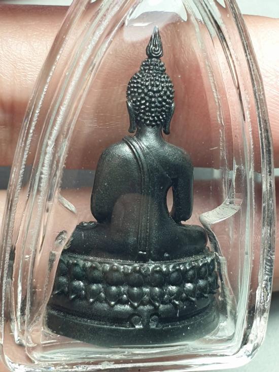 พระกริ่งพุทธรูปคุ้มเกล้าฯ มหามงคล ร.๙ 80พรรษา เนื้อนวโลหะรมดำ พิมพ์ใหญ่ เลี่ยมกันน้ำพร้อม ไม่มีกล่อง