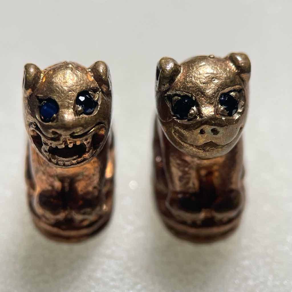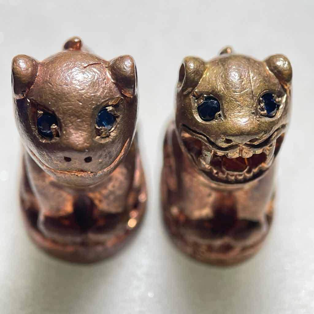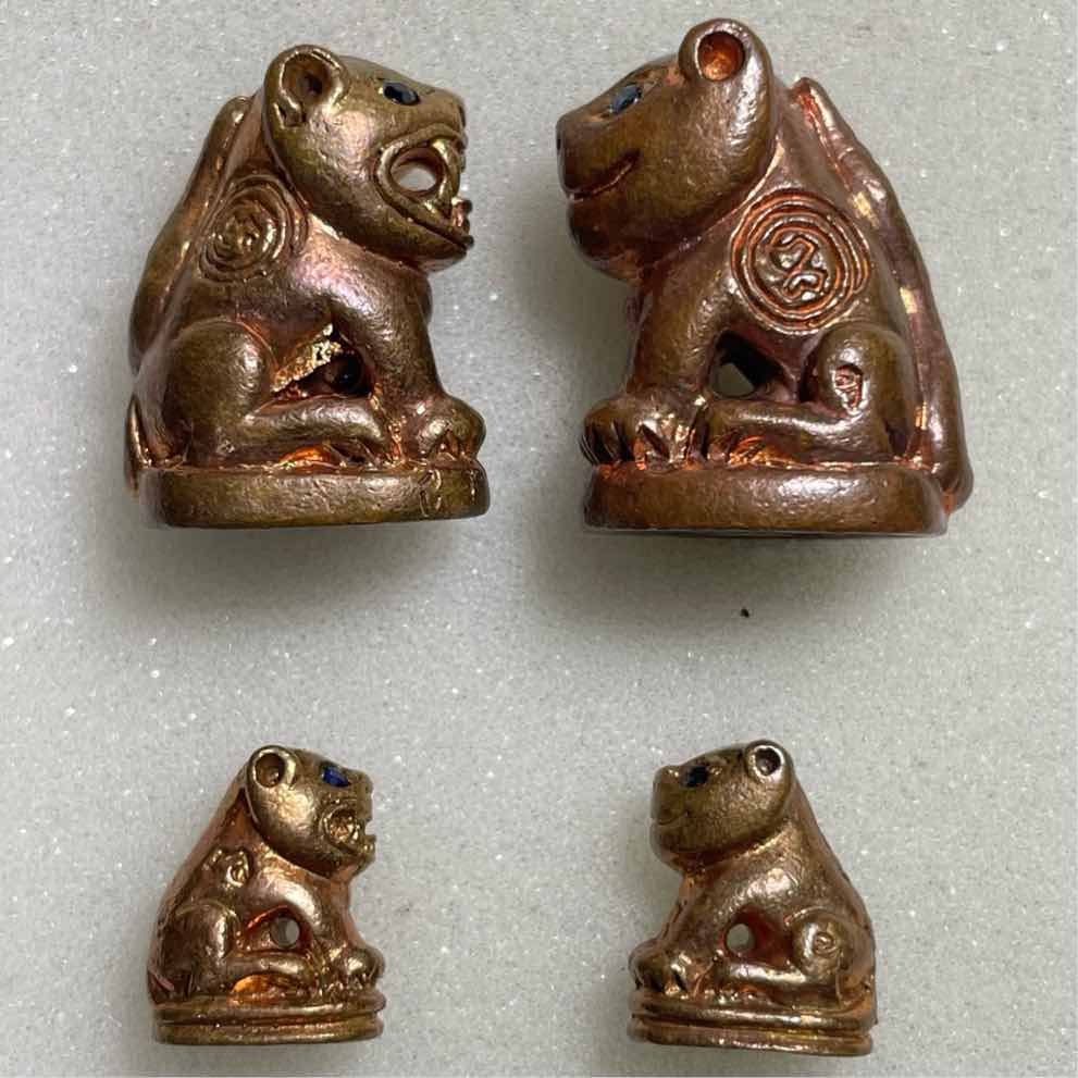 พยัคฆราช หลวงพ่อสมชาย วัดปริวาส วัฒนายุ๕๗ ปี 2552 เนื้อสัมฤทธิ์แดง อยู่ในชุดกรรมการใหญ่ ตาฝังพลอยไพลิน(สีน้ำเงิน) อ้าปาก-หุบปาก เล็ก-ใหญ่ รวม 4 ตัว no.56 มีจารอุ ใต้ฐาน #หายาก ไม่มีหมุนเวียน