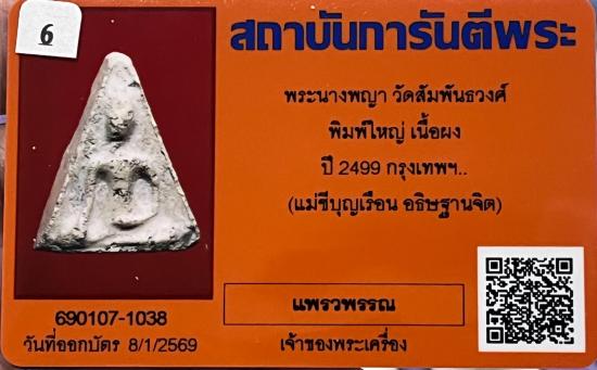 พระมงคลมหาลาภพระนางพญาพิมพ์ใหญ่เนื้อผงพรหมโสฬรหายากปี2499.พระสภาพสวยเดิมมาคะ.พร้อมบัตรตรวจเรียบร้อย.