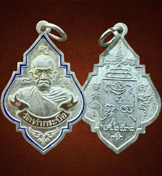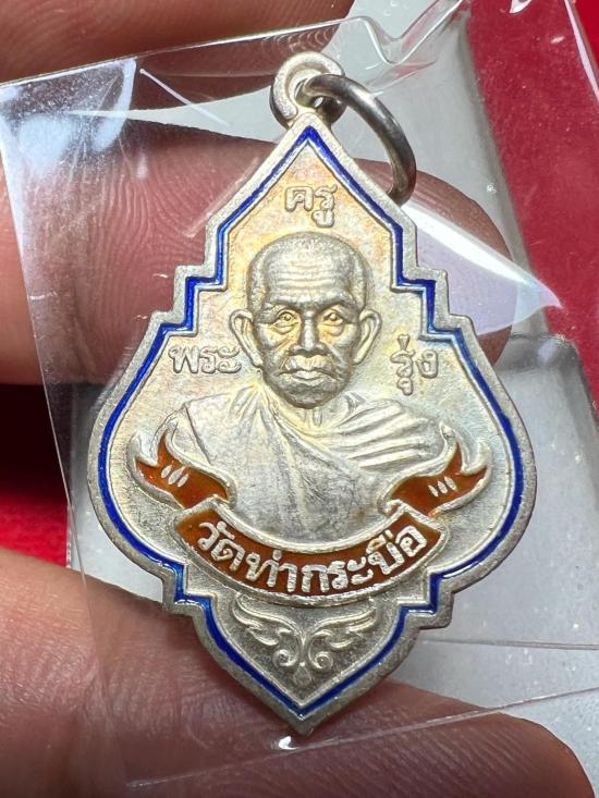 เหรียญหลวงปู่รุ่ง วัดท่ากระบือ 2538 พิมพ์ใหญ่ เนื้อเงินลงยา บล็อกหูขีด