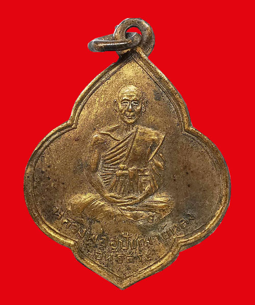 เหรียญหลวงพ่ออุปัชฌาย์หลง วัดธรรมมิการาม เนื้อทองแดงกะไหล่ทอง ห่วงเดิม ปี2497 จ.ลพบุรี + บัตรG-pra สภาพเดิมค่ะ