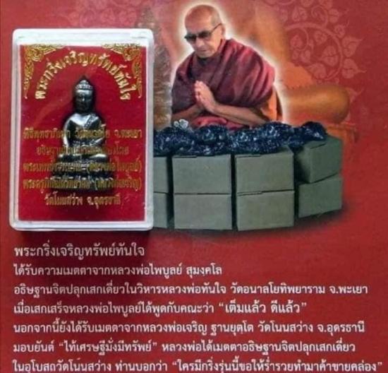 หลวงพ่อไพบูลย์ สุมังคโล เมตตาอธิษฐานจิตปลุกเสกในงานสมโภชน์หลวงพ่อทันใจ ณ วิหารหลวงพ่อทันใจ วัดอนาลโยทิพยาราม จ.พะเยา เมื่อวันที่ 10 ธันวาคม 2555 เมื่อเสกเสร็จ หลวงพ่อไพบูลย์ ฐานยุตโต ได้พูดกับคณะว่า "เต็มแล้ว ดีแล้ว"