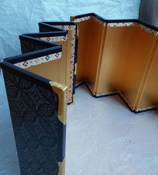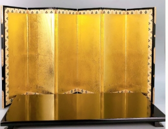 ฉากหลังสีทองขนาดเล็กลายผ้าไหม เป็นของสะสมจากญี่ปุ่น