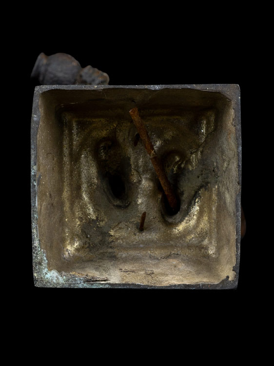 ภาพใต้ฐานขนาด 3.2 นิ้ว X 3.2 นิ้ว มีตะปู และ มีช่อชนวนขึ้นหุ่นเทียนองค์พระฯ
