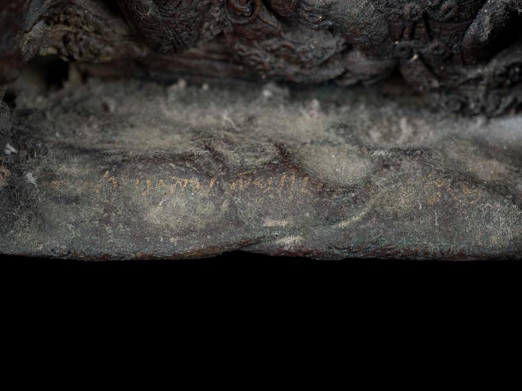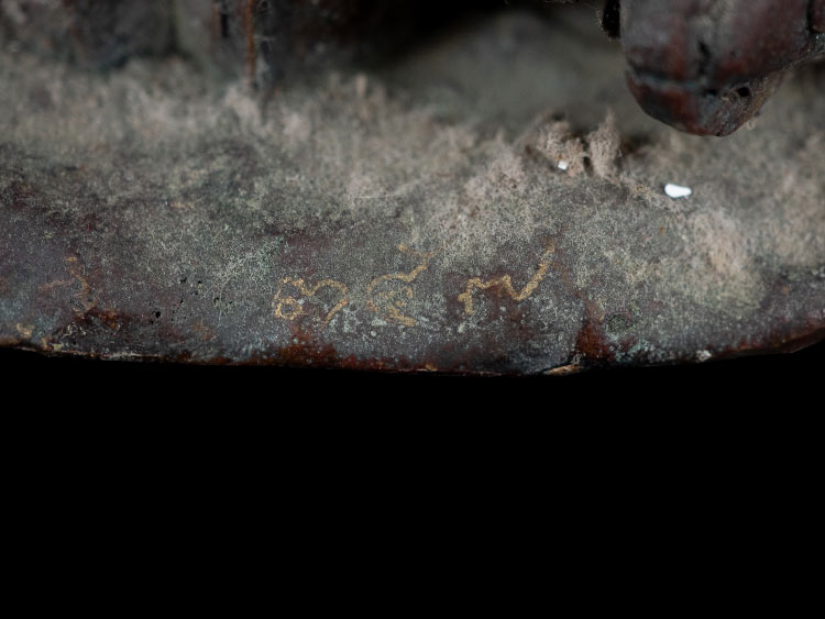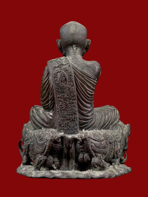 ประทับนั่งบนพญาหมูคู่ ( พญาหมูพลิกแผ่นดิน ) เนื้อโลหะผสม ผิวหิ้งสภาพสวย อักขระเลขยันต์เต็มตัว เข้มขลังมากๆ !!