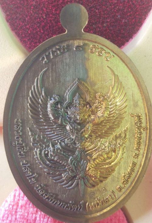 เจริญพร ห่มคลุม หลวงปู่ฝั้น ปสาโท (วัดศรีถมอรัตน์ (หน้าผา) จ.เพชรบูรณ์) เนื้อชนวน ทูโทน ลงยา ธงชาติเฉียง หน้ากากเงิน ลงยาจีวร หมายเลข ๑๒ กล่องเดิม
