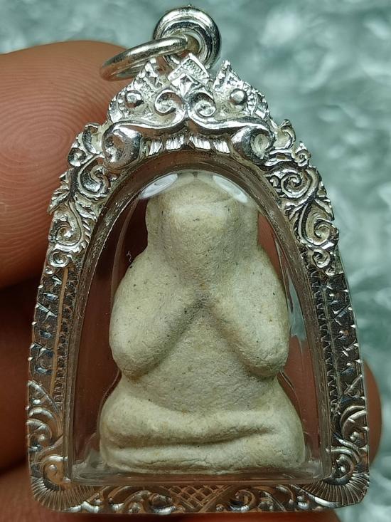 พระปิดตามหาลาภ พิมพ์ลอยองค์ หลวงปู่ศรี(สีห์) วัดสะแก อยุธยา สร้างด้วยเนื้อผงพุทธคุณผสมปูน ด้านหลังมีรอยจาร ก้นตอกโค๊ต สภาพสวยสมบูรณ์ พร้อมเลี่ยมเงินงานมืออย่างดี