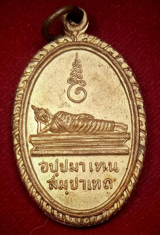 เหรียญ พระนอน พระแท่นดงรัง กาญจนบุรี ปี 12....กะไหล่ทอง |