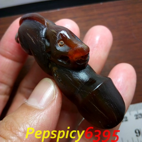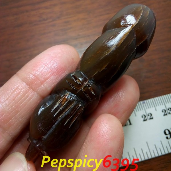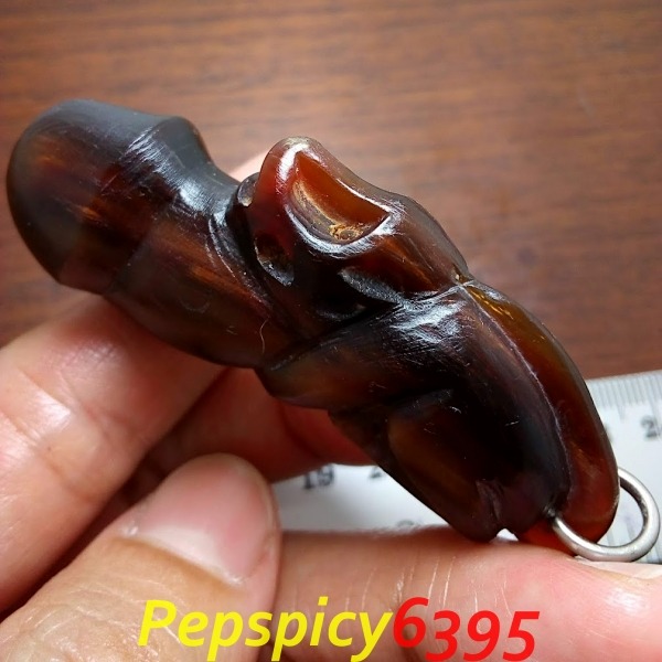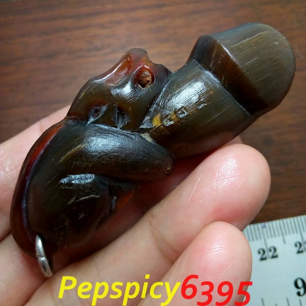 ปลัดขิกเขาควายแกะ ปี 62 ลพ.พัฒน์ เนื้อเขาควายสีน้ำผึ้ง (เขาควายเผือก) แกะเป็นรูปลิงขี่ปลัดขิก พุทธคุณด้านมหาเสน่ห์ เป็นเมตตามหานิยม โภคทรัพย์ โชคลาภ ค้าขายดี