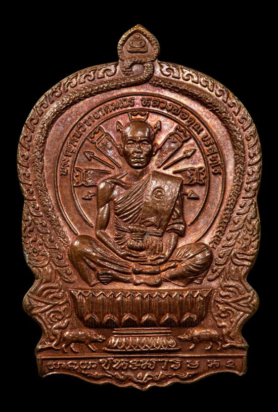 รายละเอียด เหรียญนั่งพานหลวงพ่อคูณ วัดบ้านไร่ รุ่นนั่งพานชนะมาร เนื้อทองแดง ปี 2537 จ.นครราชสีมา หมายเลข 8688 พร้อมกล่องเดิมครับ
