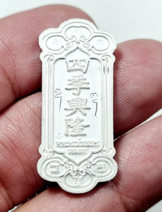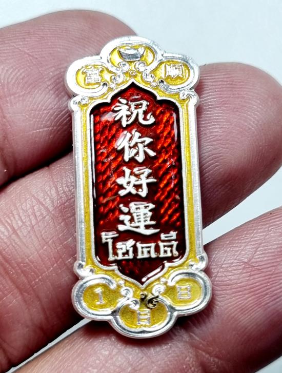 เหรียญโชคดี หลวงพ่อทอง วัดบ้านไร่ เนื้อเงินลงยา มีจารด้านหลัง