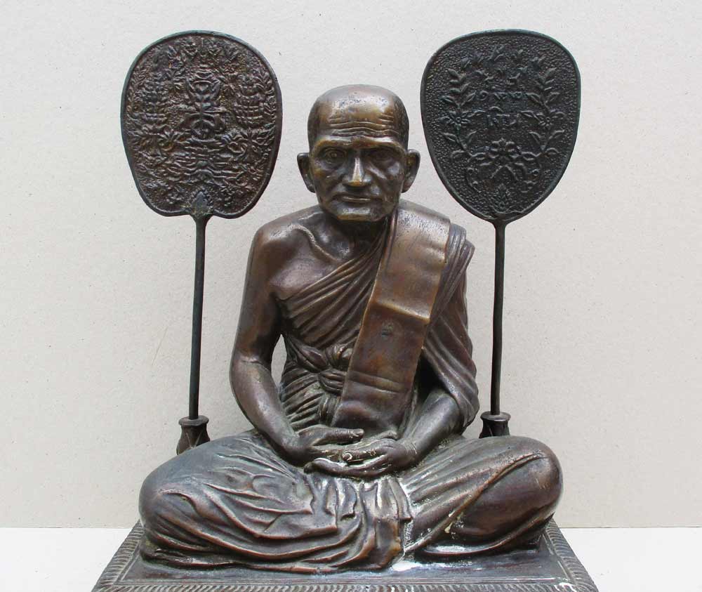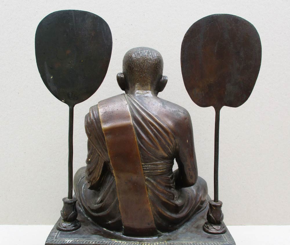 หลวงพ่อเงิน วัดบางคลาน จ.พิจิตร รุ่น ร่วมใจสร้างสะพาน วัดหิรัญญาราม พ.ศ.2528 หน้าตัก 9 นิ้ว ด้านข้างมีพัดยศคู่ เนื้อโลหะรมมันปู ผิวแห้งหิ้ง สภาพสวยสมบูรณ์ !!