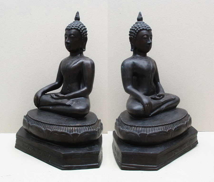 หลวงพ่อผาเงา วัดพระธาตุผาเงา จ.เชียงราย พ.ศ.2550 หน้าตัก 9 นิ้ว เนื้อโลหะรมดำมันปูผิวหิ้ง พุทธศิลป์งดงาม !!