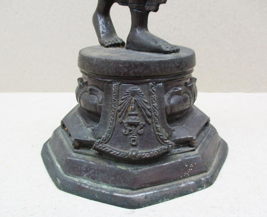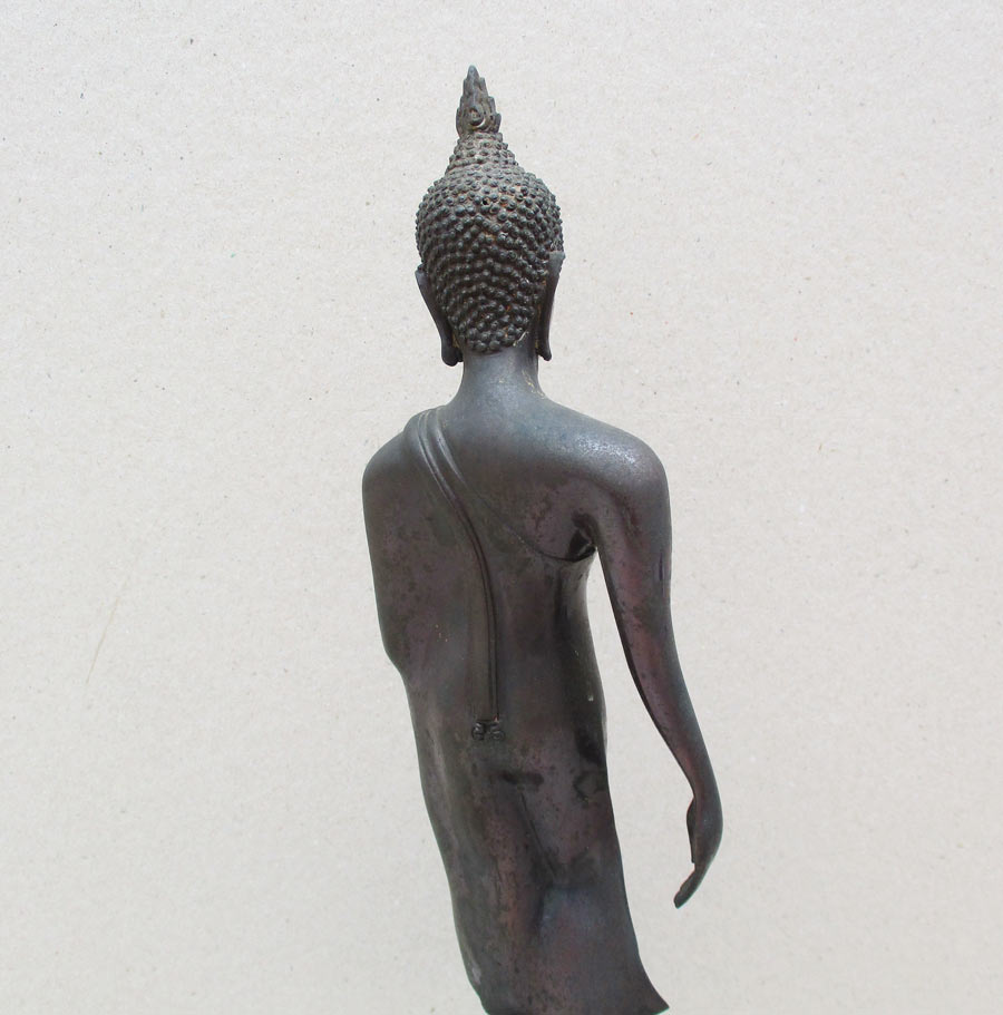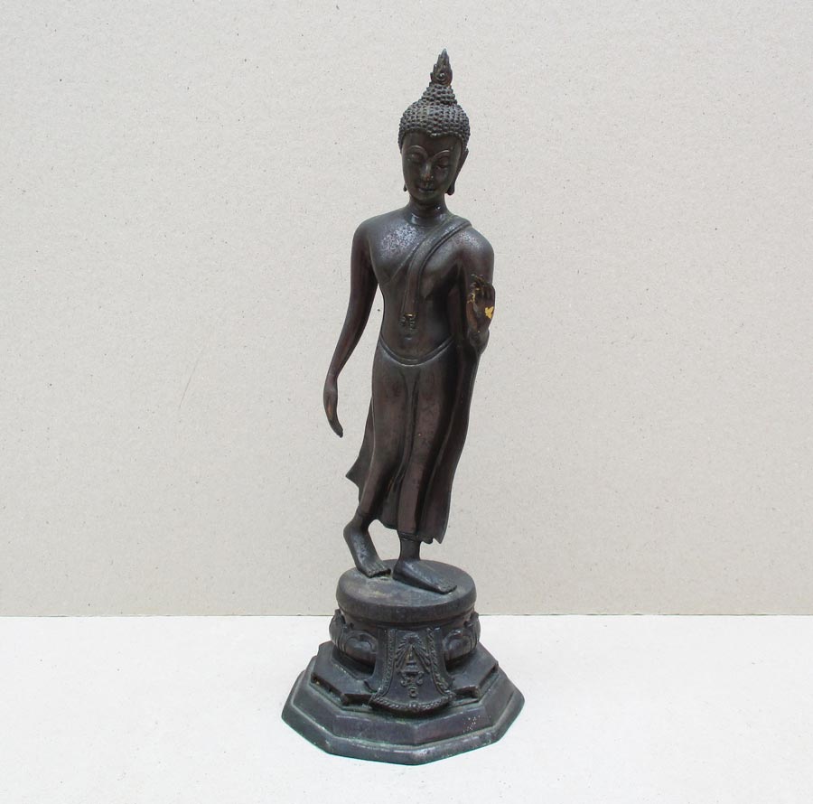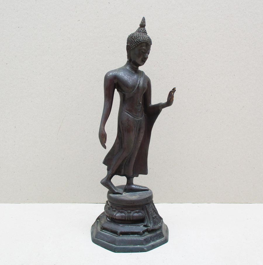 พระูพุทธปางลีลา รุ่น 3 โพธิ์ วัดอินทรวิหาร บางขุนพรหม กรุงเทพฯ พ.ศ.2530 สูงรวมฐาน 13 นิ้ว เนื้อโลหะรมมันปู ผิวแห้งหิ้ง สภาพสวย เข้มขลัง !!