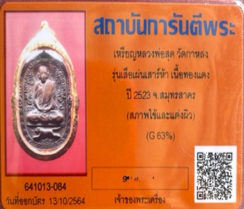 หลวงพ่อสุด เสือเผ่น เนื้อทองแดง ปี 23 วัดกาหลง