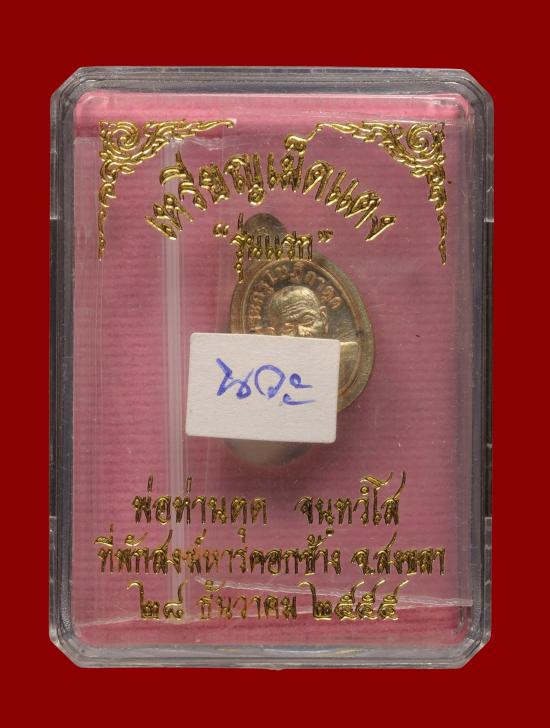 "แดง120" เหรียญเม็ดแตงหลวงปู่ทวด รุ่นแรก พ่อท่านตุด สำนักสงฆ์บ้านคอกช้าง จ.สงขลา ปี2555 เนื้อนวะโลหะ หมายเลข 299