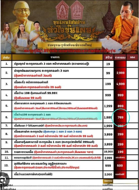 พระขุนแผนแสนล้าน รุ่น หัวใจขุนแผน หลวงปู่มหาศิลา ธรรมอุทยาน กาฬสินธุ์ 2568 ตะกรุดทองคำ 1 ดอก |
