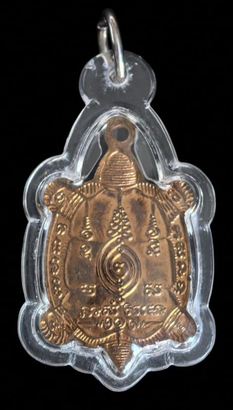 เหรียญพญาเต่าเรือน หลวงปู่หลิว รุ่นรวยทรัพย์ วัดไทรทองพัฒนาสร้าง ปี 2538 เนื้อทองแดงผิวไฟ สภาพสวยแชมป์คมชัด เลี่ยมกันน้ำพร้อมบูชาครับ