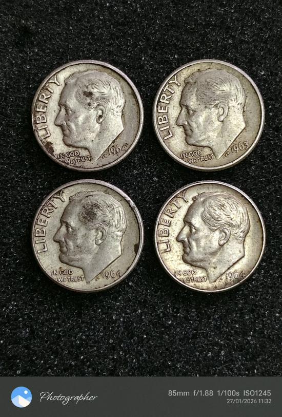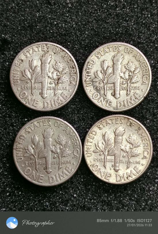 เหรียญเงินอเมริกา 1 DIME จำนวน 4 เหรียญ |