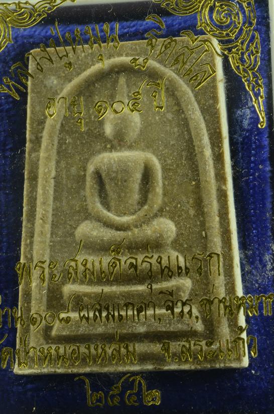พระสมเด็จรุ่นแรก หลวงปู่หมุน ฐิตสีโล พิธีเจริญลาภ ปี 2542 หลังปั๊มยันต์แดง เนื้อว่านน108 ผสมเกศา จีวร ชานหมาก พร้อมกล่องเดิม