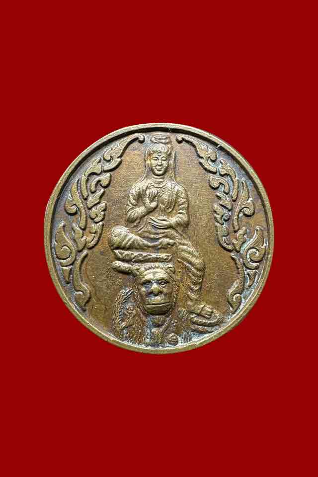 เหรียญเจ้าแม่กวนอิมนั่งเสือ ปีขาล รุ่นอยู่เย็นเป็นสุข