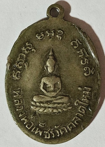 เหรียญรุ่นแรก พระครูซำ หลังหลวงพ่อเพชร วัดตลาดใหม่ เนื้ออัลปาก้า จ.อ่างทอง ปี2506 |