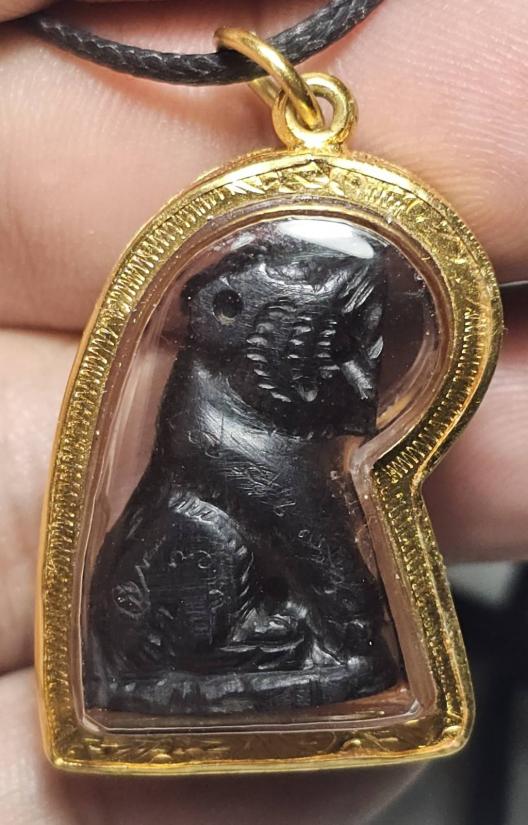 เสือหลวงพ่อคง วัดวังสรรพรส เนื้อไม้งิ้วดำ จ.จันทบุรี กรอบทอง(G 65%) **ทางสถาบันฯ ยังไม่มีข้อมูลอ้างอิงมาตรฐาน สำหรับพระเครื่องพิมพ์นี้