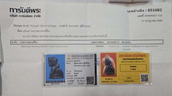 ***พิจารณาให้ชอบมีบัตรรับรองจากสมาคม แต่ส่งตรวจสอบ ออกบัตรจากจีพระแล้ว ไม่สรุปผล(ส่วนใหญ่เครื่องรางไม่ค่อยออกบัตร) ส่งพระตรวจสอบ 1 องค์ พระไม่สรุปผล 1 องค์